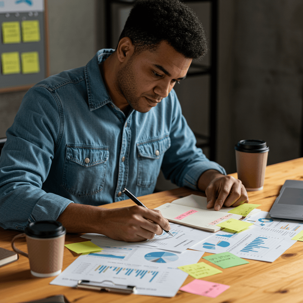 Pesquisa e engajamento com stakeholders por meio de entrevistas, questionários e grupos focais.
